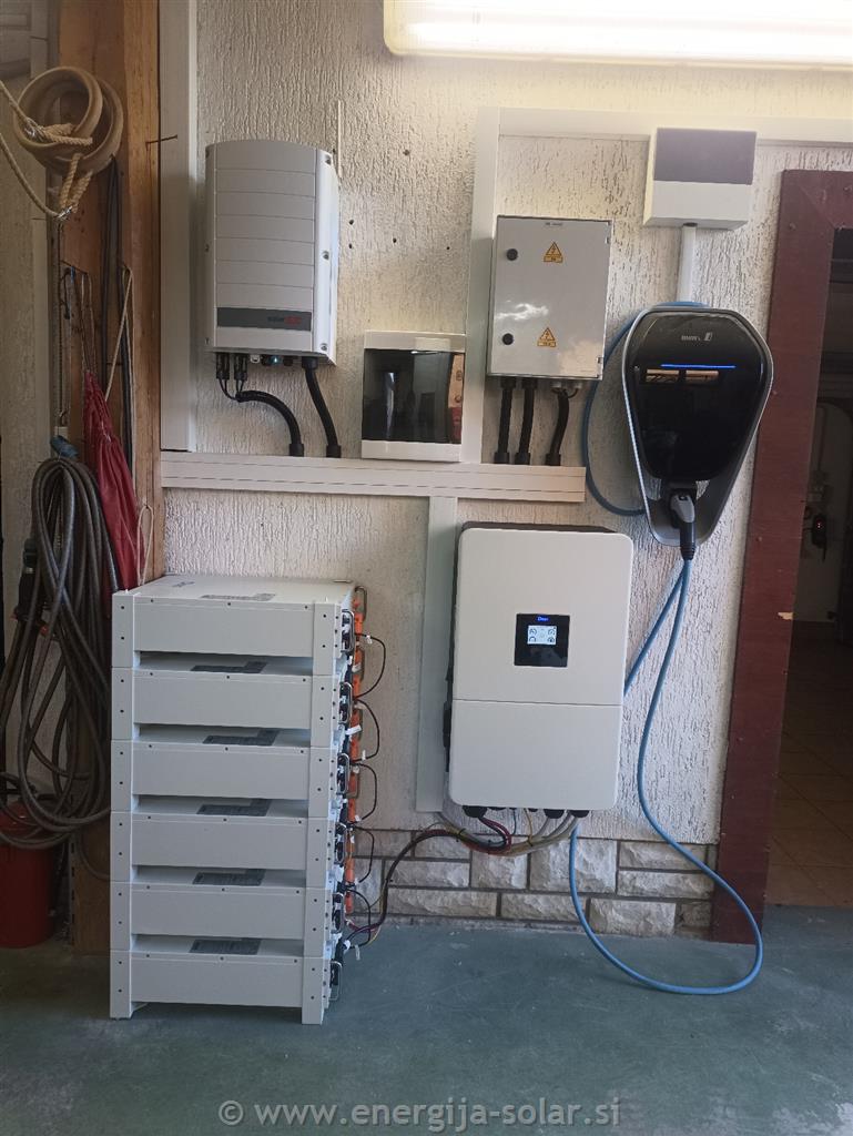 V obstoječo sončno elektrarno SolarEdge SE15K smo vgradili 30 kWh hranilnik, s katerim smo zmanjšali konične obremenitve in dogovorjeno moč zaradi polnjenja dveh električnih vozil.
